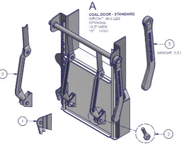 Porte à Charbon en acier avec ouverture de 13", poignée auto-barrante.